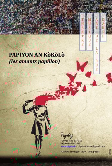 L’épilogue devient alors une sorte de transe incantatoire qui permet la transformation. Les jeunes amants devenus papillons, s’émancipent et peuvent vivre leur histoire d’amour. Les artistes de rue, eux, révèlent leur fresque inspirée de ce de qu’ils viennent de vivre. Deux papillons y figurent, à l’intérieur desquels sont insérés des écrits/dessins réalisés en amont du spectacle, par les spectateurs,.
